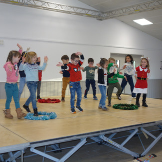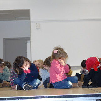Les PS-MS ont chanté et dansé sur une chanson traditionnelle anglaise et la comptine "L'as tu vu?"