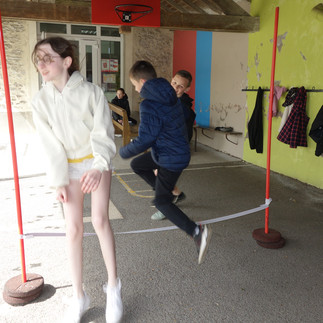 L'après-midi, nous avons réalisé des défis sportifs : 100 sauts, 100 lancers, 100 passes, 100 m à courir.