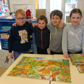 Les élèves de GS, CP, CE1 et CE2 avaient exposé leurs collections de 100 dans la salle culturelle.