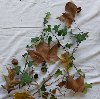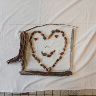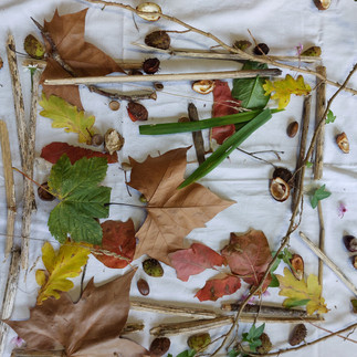 Nous sommes allés nous promener autour de l'école et nous avons récolté des éléments de la nature : des glands, des marrons, des feuilles, des branches, des écorces...