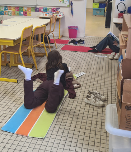 Tous les jours en rentrant de la cantine, les CM1-CM2 s'installent pour le quart d'heure de lecture. Quel plaisir de pouvoir s'installer où on veut, comme on veut ! Quel calme dans la classe, chacun est concentré sur sa lecture. Quand le livre est bien lu, direction les ordinateurs pour répondre aux questions de compréhension.